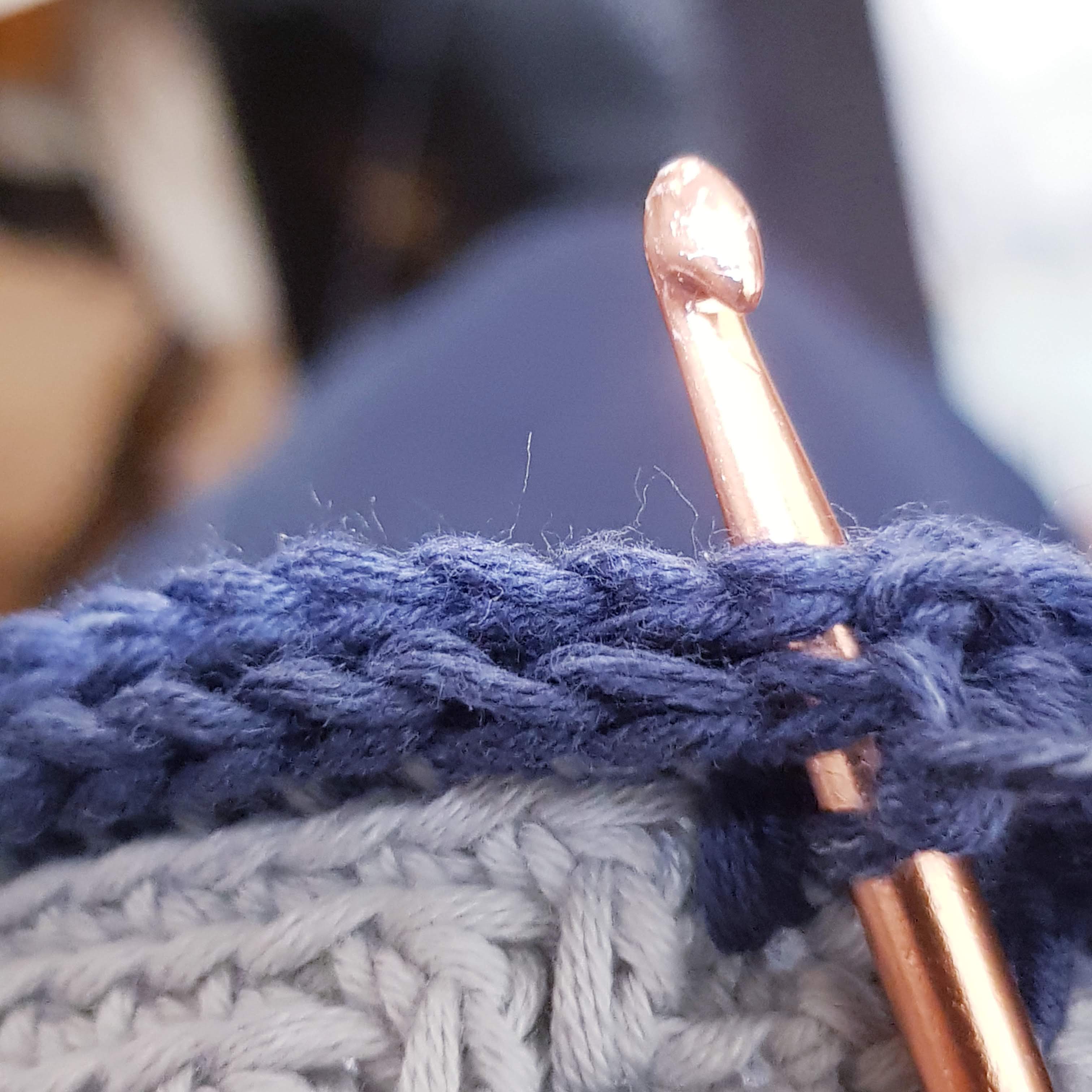 Step 4 – CH 1. 144 SC in the back loop of SC from steps 2 and 3. Join to first SC with a slip stitch.